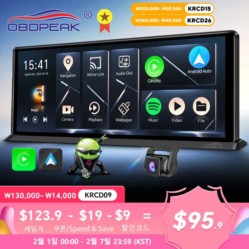 K2 프로 차량용 DVR 4K 카메라 무선 카플레이, 안드로이드 자동 Ai 스크린 대시 캠, 듀얼 렌즈 비디오 녹음기, GPS 네비게이션 대시 보드, 11.3 인치