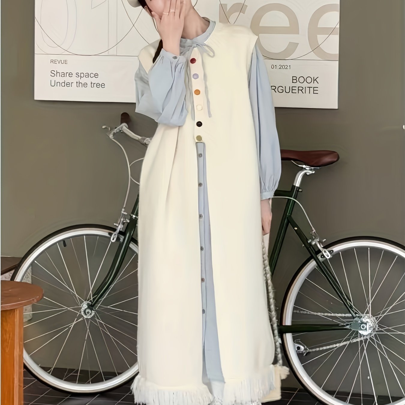 TEMU 여성용 빈티지 스타일 레이지 롱 베스트 드레스