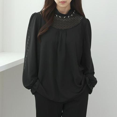 여자 블랙 크레이프 겨울 블라우스