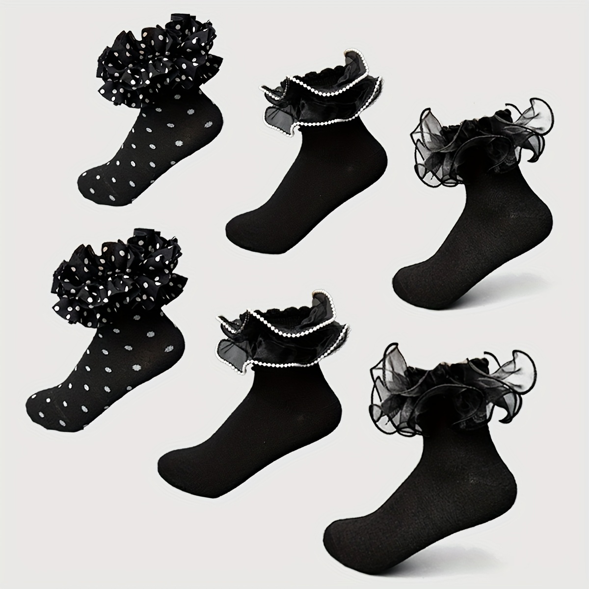 TEMU 여성용 우아한 러플 레이스 트림 미드-카프 양말 3켤레 - 폴카 도트 & 러플 커프스, 댄스, 캐주얼, 야외용 부드럽고 신축성 있는 원단 - 단색 (, 브라운, ) - 손세탁 가능, 캐주얼 웨어, 폴카 도트 패턴, 편안한 착용감