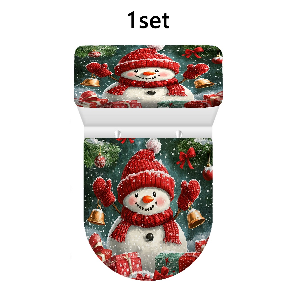 TEMU 1세트 겨울 크리스마스 눈사람 화장실 커버 세트, 세 개의 종 프린트, 장식용 변기 탱크 커버 및 변기 뚜껑 커버 세트, 매끄러운 섬유 원단 변기 탱크 커버, 탄성 가장자리 변기 커버 세트, 신축성 있는 변기 시트 및 탱크 뚜껑 소프트, 욕실 세트 변기 액세서리 홈 데코에 적합