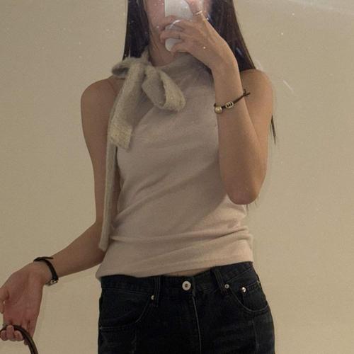 홀터넥 민소매티 슬림핏 나시 크롭 라인 데일리 배색 WF0D427