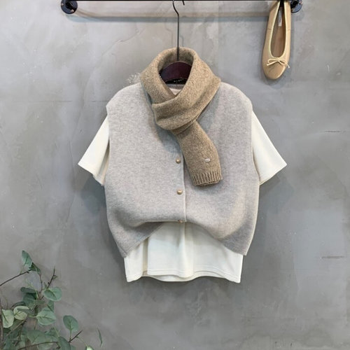 씨샵인더룸 / 무타 로즈골드 버튼 베이직 세미크롭 니트 조끼 3color C