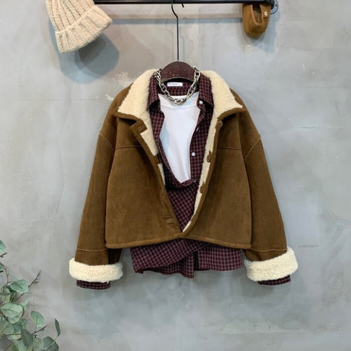 [옷자락]여성 무스탕 떡볶이 스웨이드 양모 카라넥 크롭 자켓