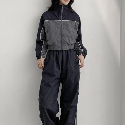 [옷자락]여성 배색 반집업 세미크롭 바람막이 점퍼