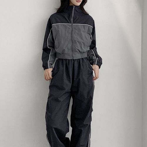[다잇템][다잇템] 여성 세미크롭 하프집업 단가라 콘트라스트 윈드브레이커 FW 점퍼_23001281_588872