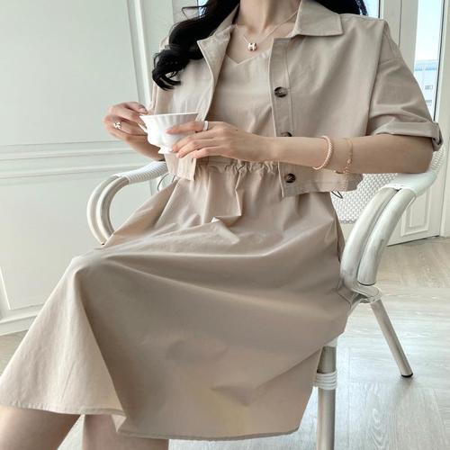 [루시다][루시다][SET]피비 크롭자켓+나시 원피스 셋업