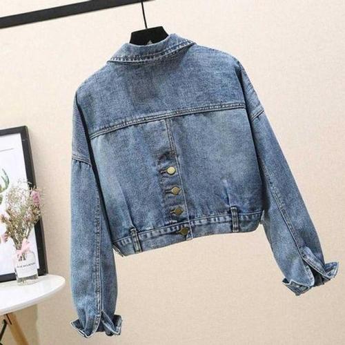 여리진 여성용 데님 크롭 청자켓 베이직 빈티지 워싱 데님 자켓 아우터