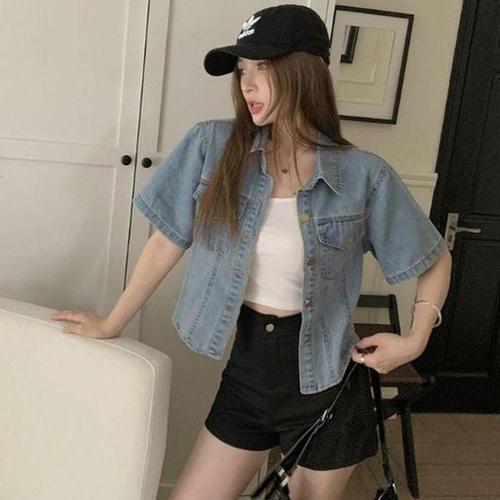 [에이치플러스몰]여름 반팔청자켓 추천 데님재킷 여성 꾸안꾸 크롭 숏