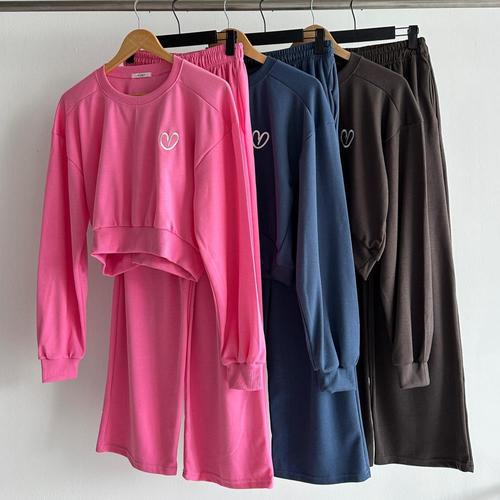 [옷자락] 여성 하트자수 크롭티와 트레이닝팬츠 세트
