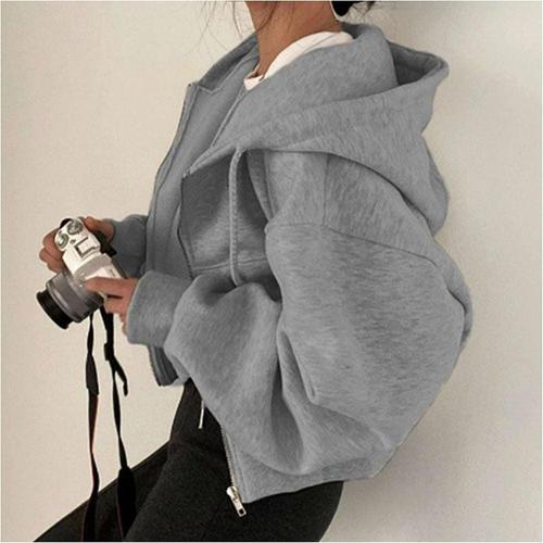 Lucyever 여성용 크롭 후드 집업 재킷, 슬림 긴팔 Y2K 스웻셔츠, 솔리드 스트리트웨어, 스포츠 후드티, 가을 신상