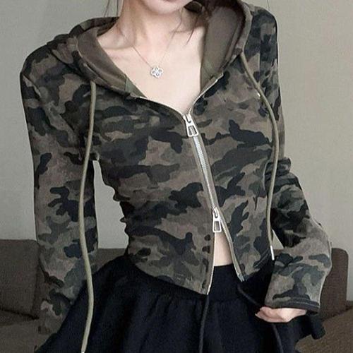 여성 크롭 밀리터리 후드집업 긴팔 슬림핏 투웨이 집업 WFKPXZX