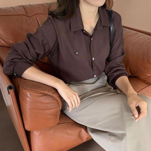 [신상오픈런]여성 레이온 단색 팬던트 세미크롭 긴팔 블라우스