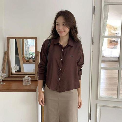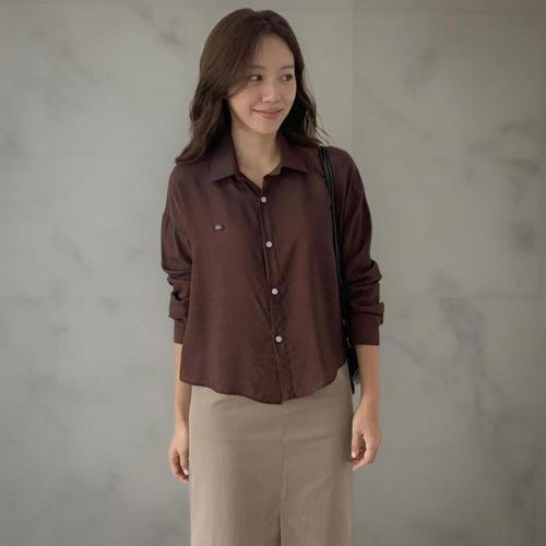 [신상오픈런]여성 레이온 기본 컬러 세미 크롭 긴팔 블라우스