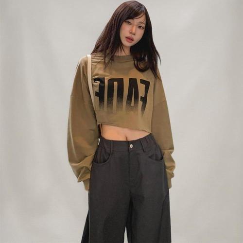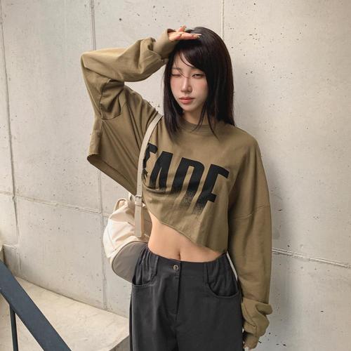 [옷자락] 여성 빈티지 코튼 루즈핏 커팅 크롭 긴팔 맨투맨