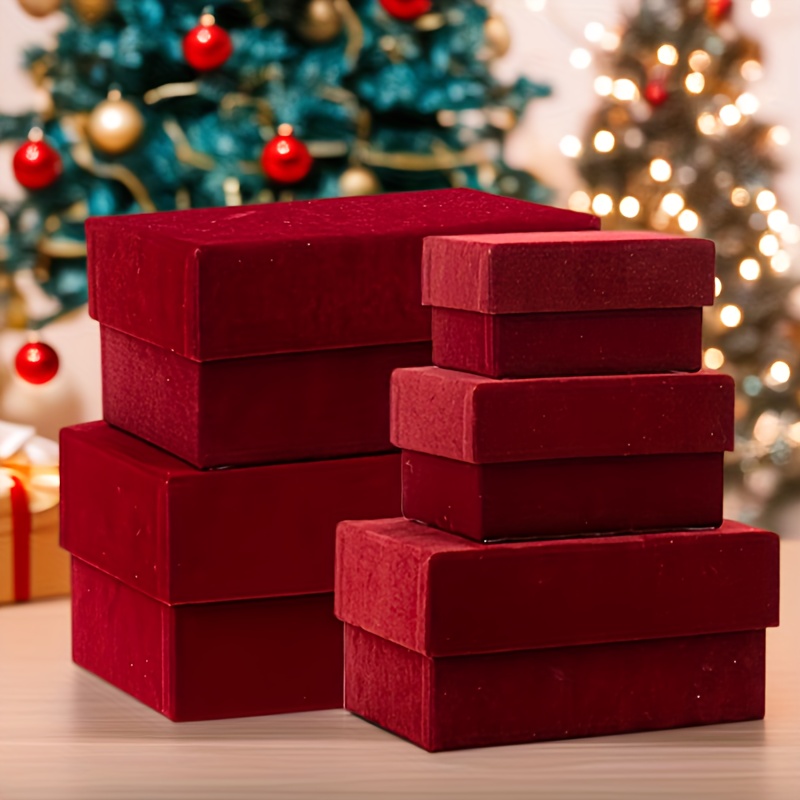 TEMU 5개 세트 우아한 버건디색 뚜껑 포함 선물 상자 - 튼튼한 골판지 구조, 직사각형 고급 포장 (결혼식, 생일, 크리스마스, 기념일), 선물용 선물 상자, 웨딩 답례품 상자, 장식 리본, 종이