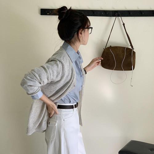 [울10%함유/오버핏] 클라우 시스루 브이넥 긴팔 가디건 (4color)