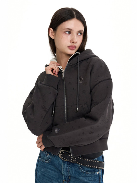 [키르시] 워딩 아플리케 후드 집업 [멜란지 그레이]
