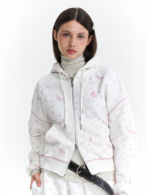 [키르시] 트롤 빈티지 그래픽 기모 후드 집업 [화이트]
