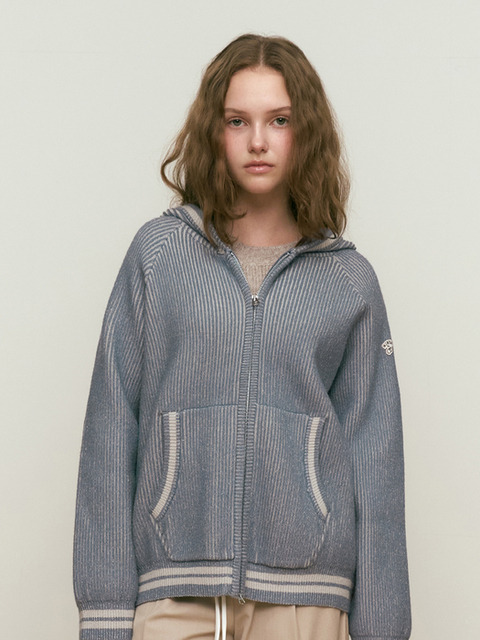 [키르시] 니트 믹스 후드 집업 [스카이]