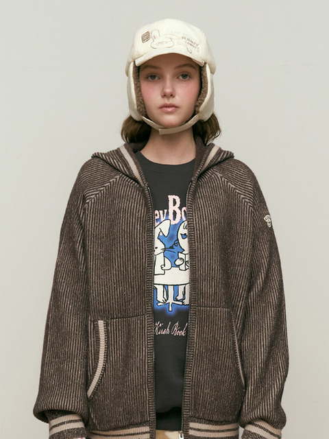 [키르시] 니트 믹스 후드 집업 [베이지]