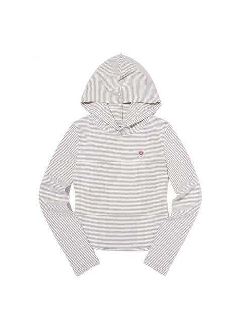 [키르시] 키르시 X 피투 스트라이프 슬림핏 후디드 롱슬리브 [멜란지 그레이]
