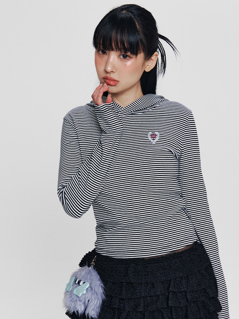[키르시] 키르시 X 피투 스트라이프 슬림핏 후디드 롱슬리브 [블랙]