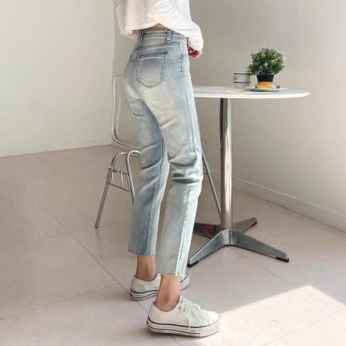 슬로핏 여성용 스판 허리 밴딩 워싱 일자 팬츠 보이핏 데님 바지 [기장3종]