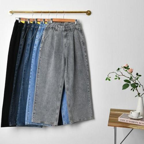 엘블로썸 여성 [숏,기본,롱] 스판 와이드 허리편한 히든밴드 청바지 3단기장