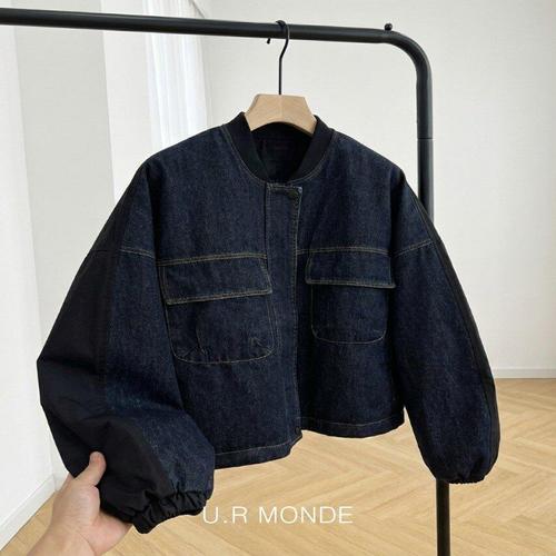 유아몽드 / 유아몽드 데님 블랙 배색 퀼팅 안감 숏 자켓 노카라