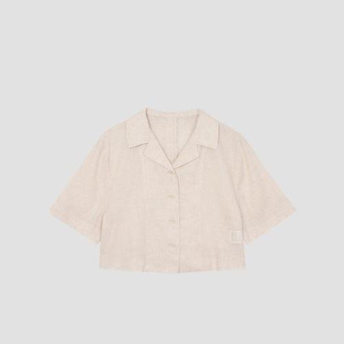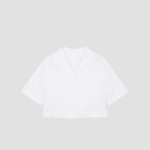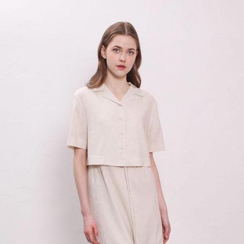 [유닛]백 카라 슬릿 하프 슬리브 크롭 셔츠 (원피스 세트)
