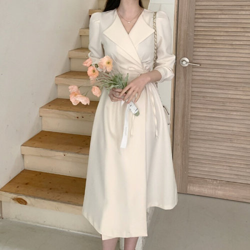 [벨리시앙]벨리시앙 테일러드 카라 밑단주름 원피스 OP4104