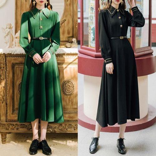 [교복몰]프렌치 금장버튼 빅카라 긴팔 원피스(2color) 교복