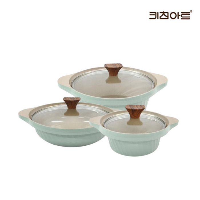 키친아트 키친아트 와이즈 IH 인덕션용 세라믹코팅 냄비세트 3종i(편수18+양수24+전골24)