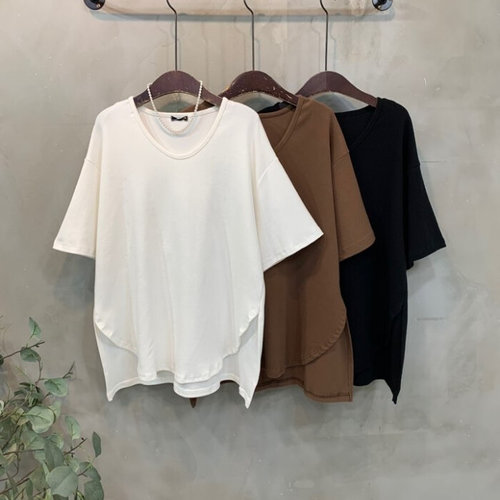 씨샵인더룸 / 타보 겉 피치 기모 트임 언발 밑단 브이넥 반팔 티셔츠 3color