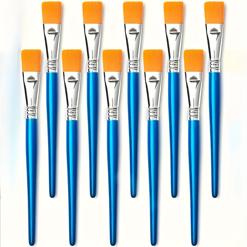 TEMU 10개 세트 전문가용 페인트브러시 - 플라스틱 섬유 브리스틀 & 멀티컬러(오렌지 팁) - 아크릴, 유화, 수채화용 헤비듀티 브러시 - 모든 표면용 라운드/플랫/디테일 브러시 (크리스마스/추수감사절 선물 추천)