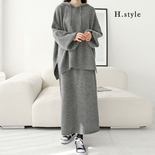 H스타일(SET)탐니트후드치마세트/겨울/기모/트레이닝