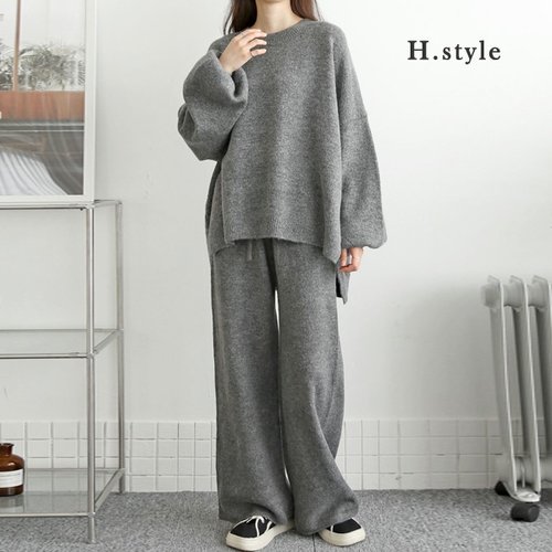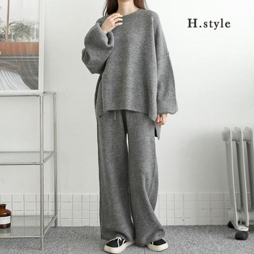 H스타일(SET)탐니트라운드바지세트/기모/니트트레이닝
