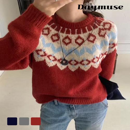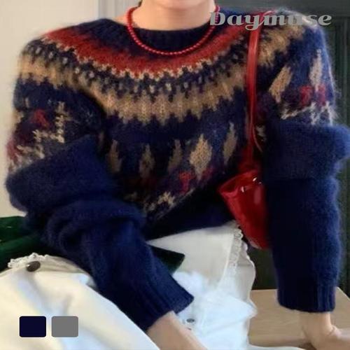 [모어오브]픽쳐 노르딕 니트 라운드넥 긴팔 스웨터 탑