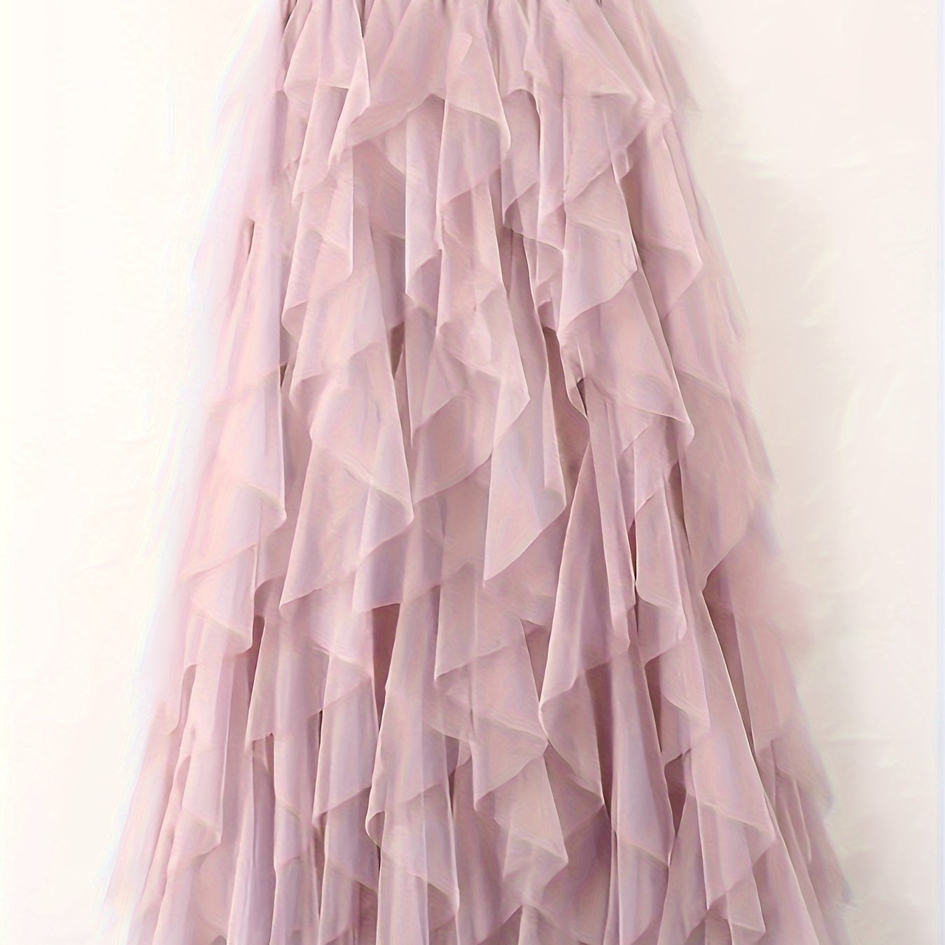 TEMU 여성용 우아한 하이웨이스트 A라인 레이어드 튤 스커트 - 멀티 티어 러플 헴, 단색, 봄/가을에 완벽, 캐주얼부터 포멀 웨어까지, 캐주얼 복장, |티어드 스커트|티어드 헴, 여성용 스커트, 여성용 스커트 우아하고 우아한