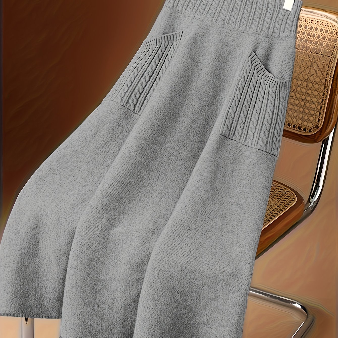 TEMU 플러스 사이즈 - 단색 포켓 A라인 스커트, 미디 스커트, 우아한 여성용 포켓 스커트, 단색 골지 텍스처 플러스 사이즈 스웨터 스커트, 캐주얼하고 편안함.