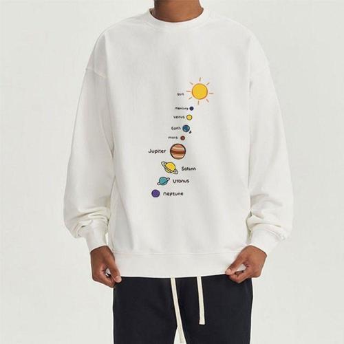 양면 남녀공용 태양계 프린트 맨투맨 티셔츠 WFLLZIB