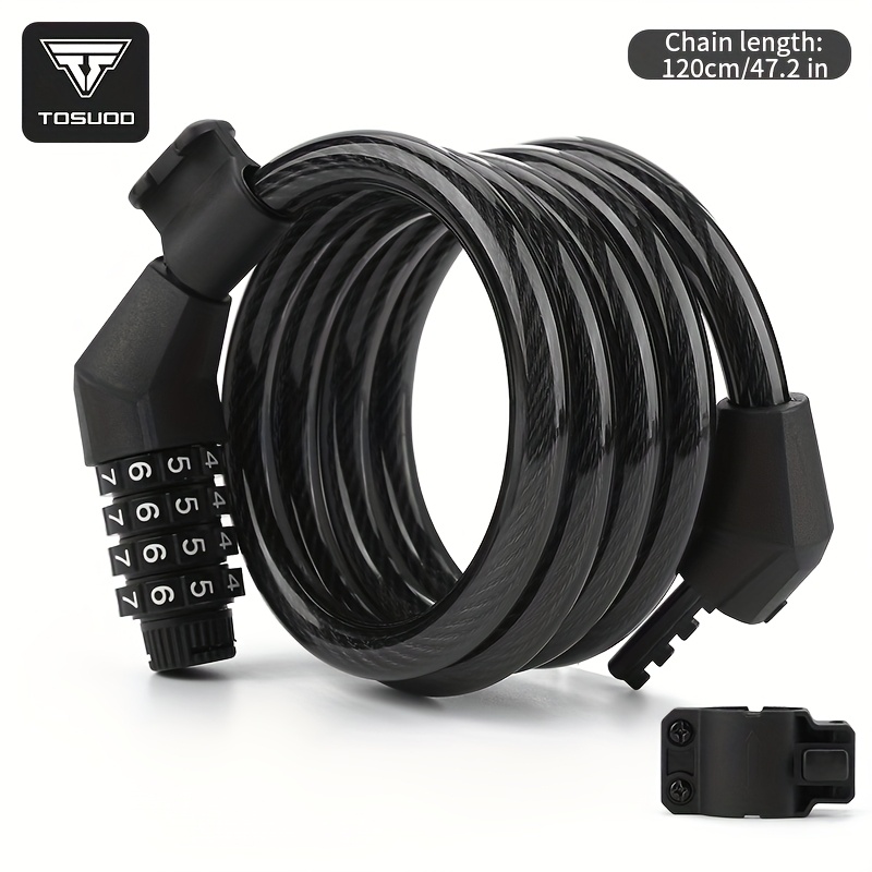 TEMU TOSUOD 도난 방지 4자리 비밀번호 자전거 잠금장치 - 4자리 비밀번호, 내구성이 뛰어난 알루미늄 합금 체인 잠금장치, 방수 및 재설정 가능, 산악 자전거, 로드 자전거를 위한 안전한 자전거 잠금장치, 내구성 및 방수 기능