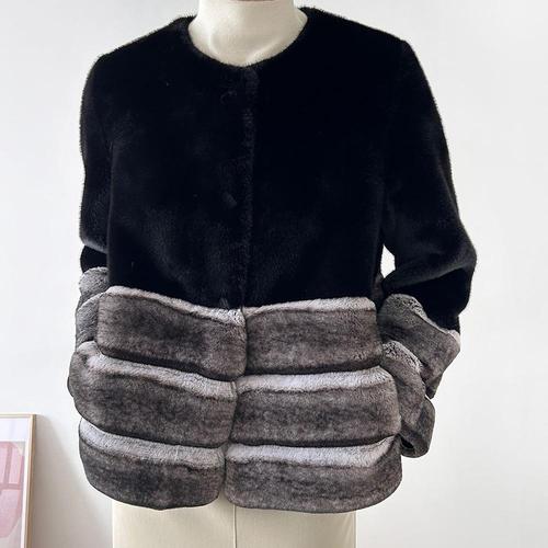 [신상오픈런]여성 겨울 배색 퍼밍크 코트 모임룩 속가죽 자켓