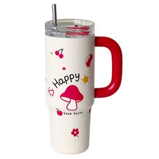 리안 해피 머시룸 빨대형 보온 텀블러, 1개, 900ml, 화이트 + 레드