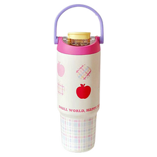 Ryan 대용량 일러스트 패턴 손잡이형 스테인리스 텀블러, 1개, 900ml, 화이트+핑크+퍼플