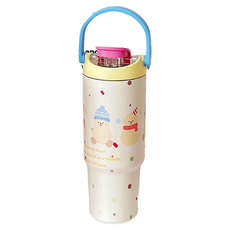 Ryan 대용량 일러스트 패턴 손잡이형 스테인리스 텀블러, 1개, 900ml, 화이트+옐로+블루
