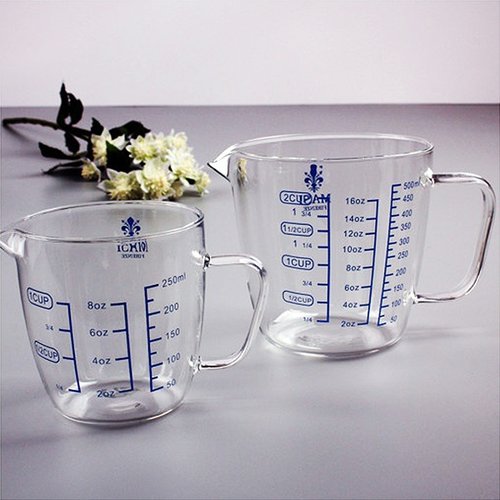 TEMU 유리 재질의 손잡이와 빨간색 눈금이 있는 계량컵 - 베이킹 및 요리에 사용할 수 있는 내열 주방 용품