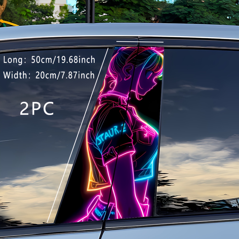 TEMU 2개 세트 애니메이션 네온 야광 자동차 스티커 - 만화 여성 캐릭터 비닐 데칼, 방수 - 기둥 창문 장식용, 트럭, (스마트폰/컷아웃 호환) - 쉽게 붙이고 떼는 디자인