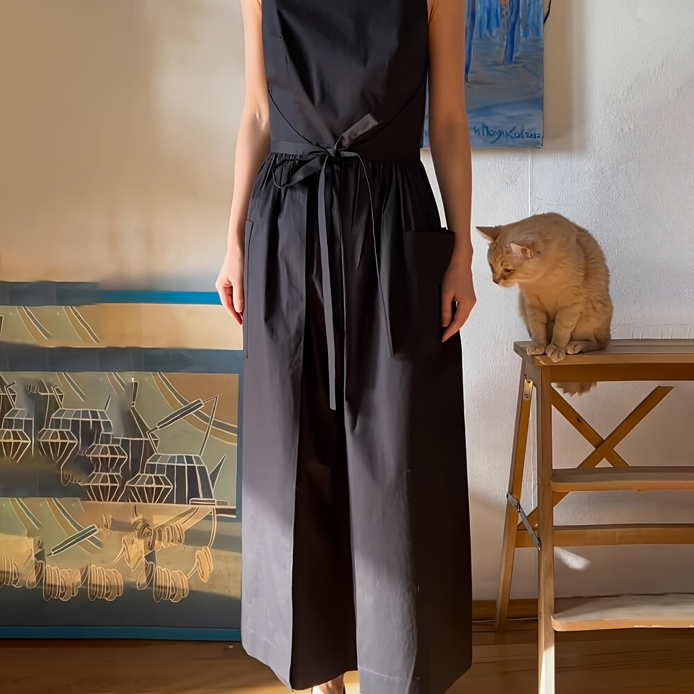 TEMU 여성용 우아한 민소매 맥시 드레스 - 정장 & 캐주얼 시크, 조절 가능한 허리 벨트, 파티, 사무실, 일상복을 위한 흐르는 롱 드레스 - 여성 의류, 시크한 드레스, 오프숄더 스타일, 구조적인 실루엣, 오피스 복장, 가벼운 원단, 성인복|나시원피스|민소매원피스|가을원피스